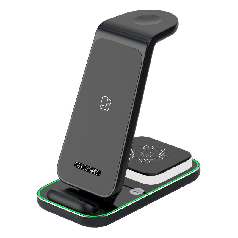 521物呱呱YF-A6/A9四合一双线圈无线快充电器苹果/华为/小米*手机/手表/耳机免升级带夜灯和氛围灯塑胶款