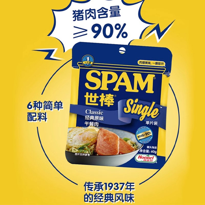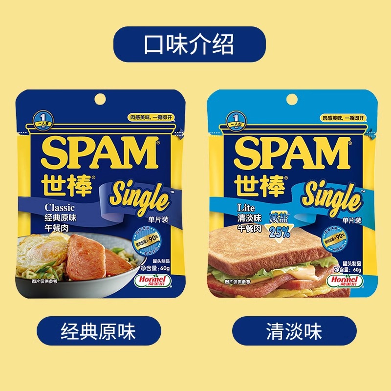 世棒午餐肉猪肉火腿单片装原味即食零食独立包装60g早餐三明治