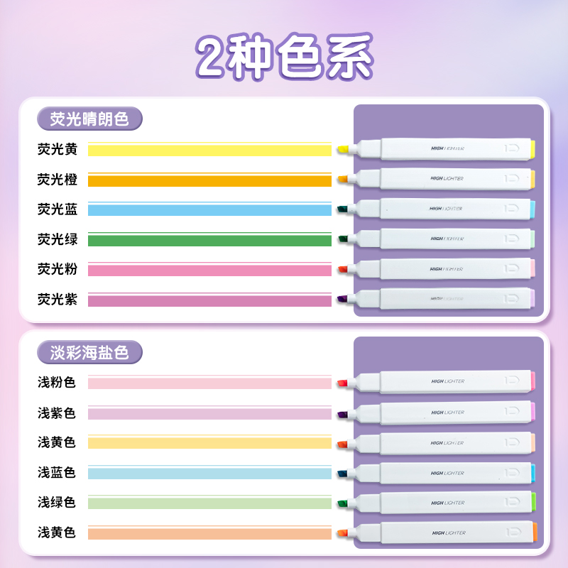 点石三角杆荧光笔12色记号笔简约学生划重点标记笔套装柔色手账笔
