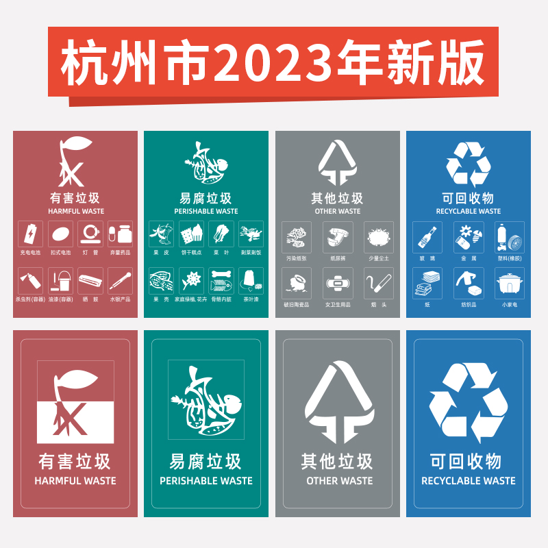 干湿垃圾分类贴纸标识北京上海杭州苏州成都武汉垃圾桶标志不可回收有害易腐厨余其他垃圾指示幼儿园宣传标语