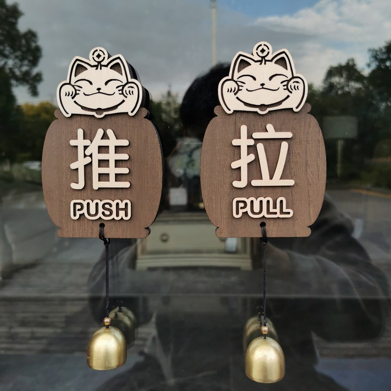 推拉门贴提示牌酒店推拉指示牌玻璃门提示牌创意实木推拉标识