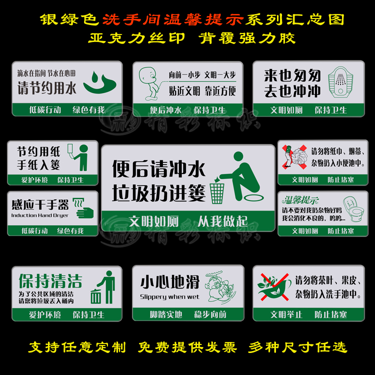 亚克力节约用纸手纸入篓提示牌每次只取一张节能环保标识牌标志贴