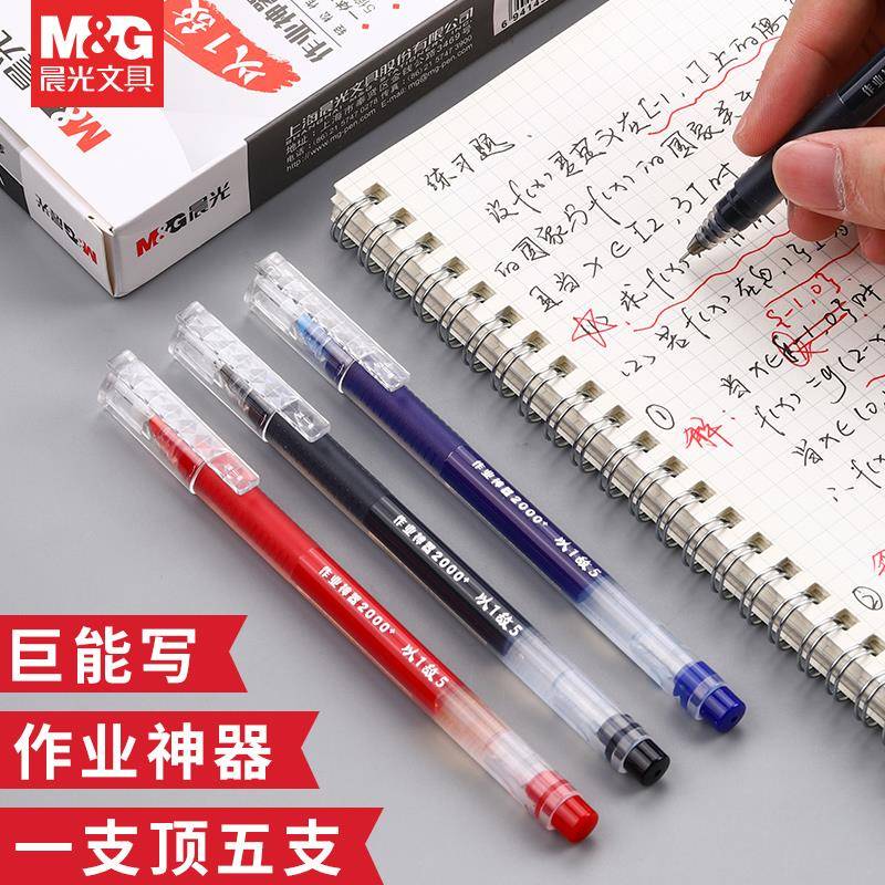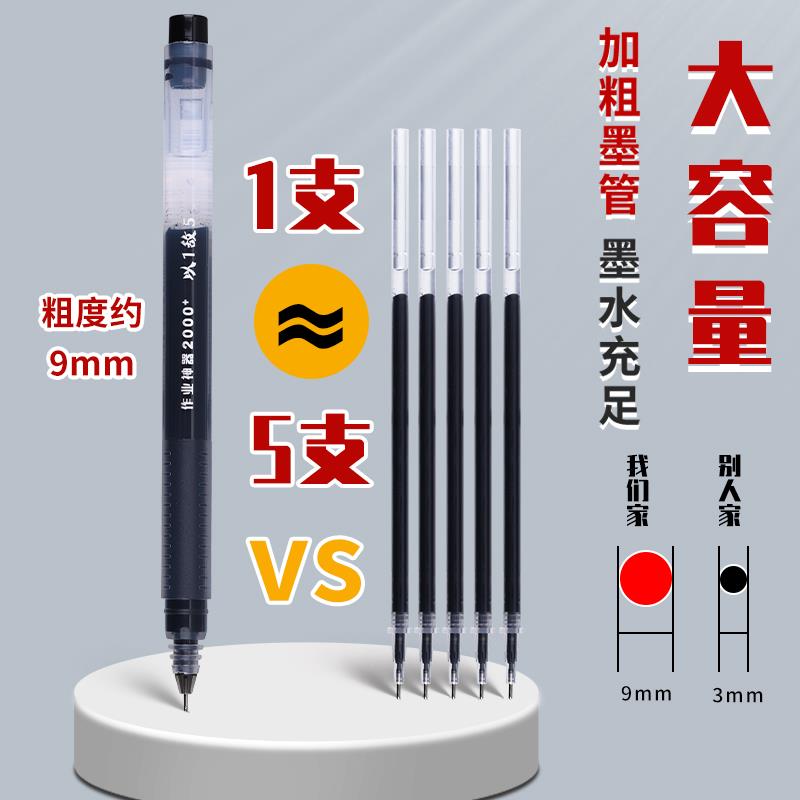 晨光大容量中性笔巨能写速干学生写作业神器水笔红笔以一敌五一体式全针管笔芯黑色签字碳素考试刷题专用