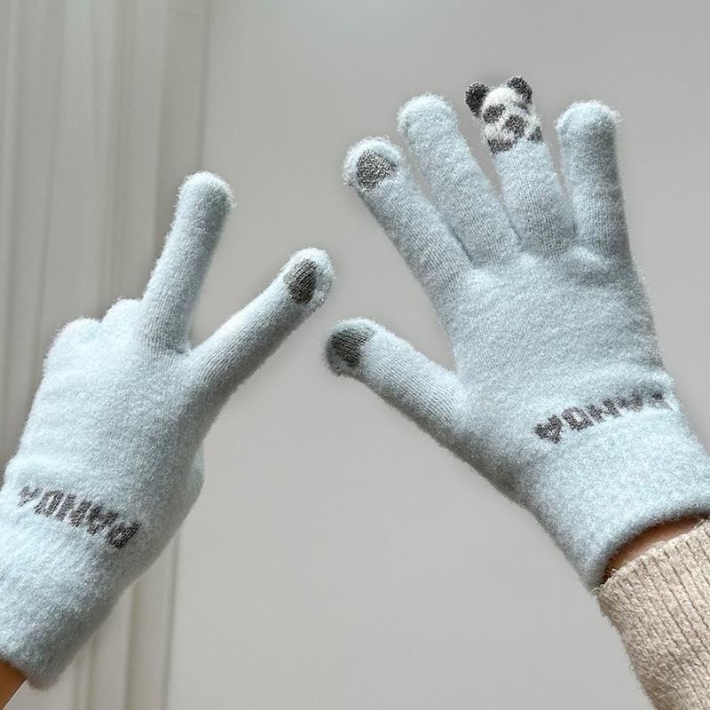 小熊猫可爱加绒加厚棉手套女士学生冬季骑车防寒保暖可触屏御寒