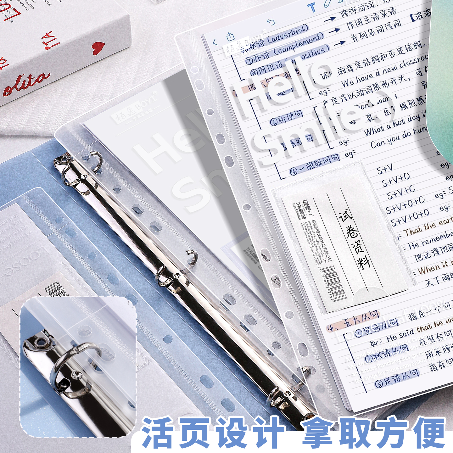 a4活页文件夹透明插页资料夹可拆卸小学生专用活页夹硬壳收纳袋试卷收纳档案夹初中生专用插页收纳册高颜值