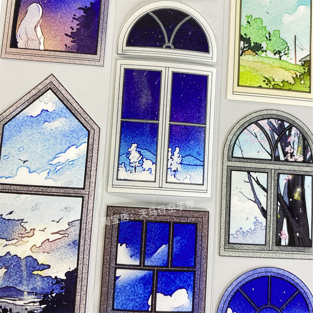 手帐分装胶带窗景新七天窗户夜色造景古风PET素材账流麻贴纸咕卡