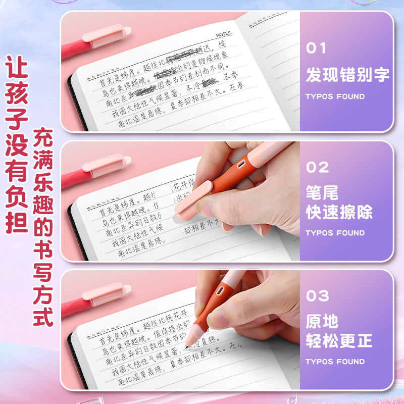 英雄热敏可擦钢笔可爱渐变色小学生专用三年级卡通正姿墨囊练字笔