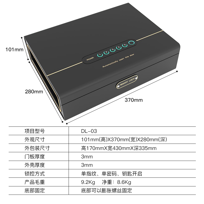 德凌保险柜 小型上翻式10CM高 隐藏式防盗保险箱家用抽屉车载上翻