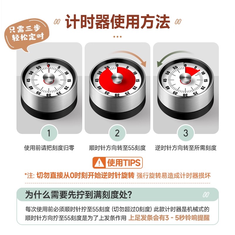 厨房做饭计时器烘焙机械定时提醒器可视化时间管理学习倒计时磁吸