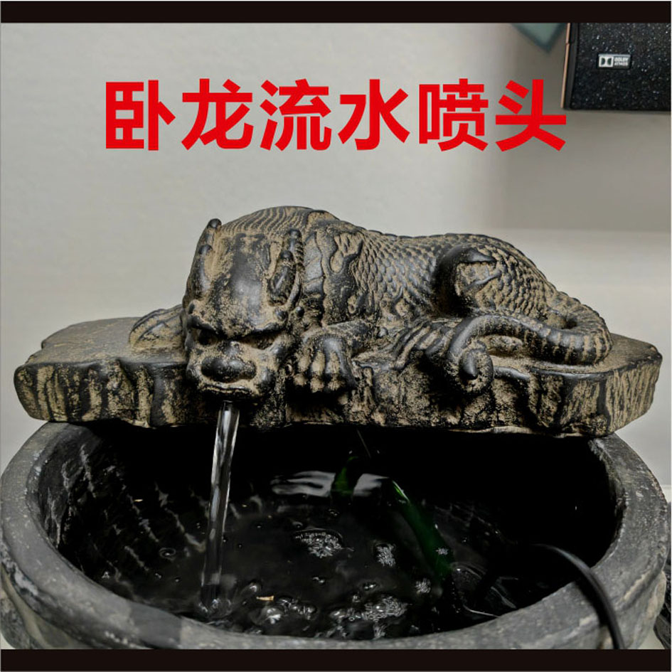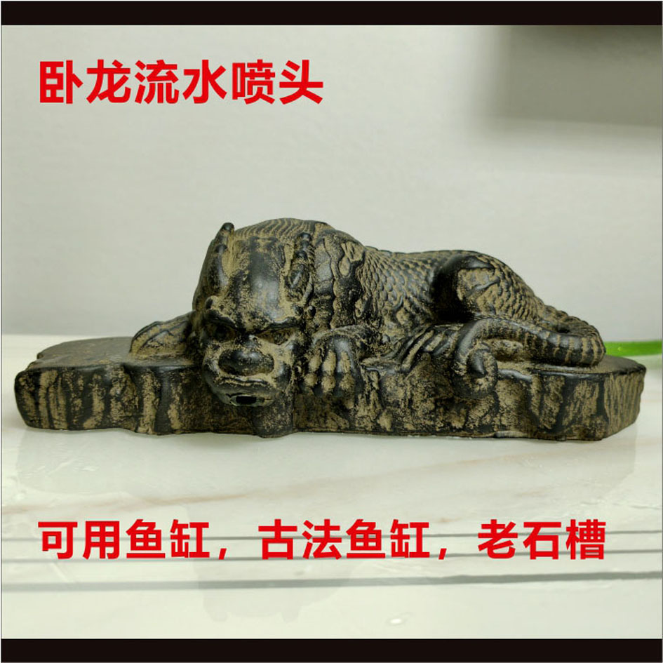 复古卧龙流水摆件水循环鱼缸高档送礼礼品老石槽喷头古法庭院