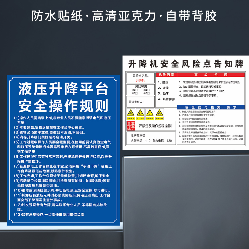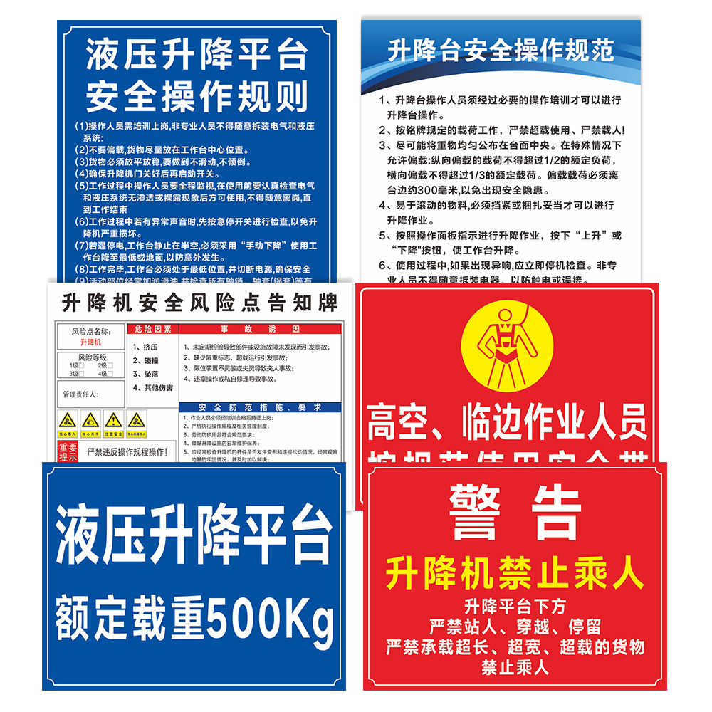 升降台安全标识牌 液压升降平台安全操作规程指示牌起重操作规范牌 吊具限重限载提示牌 升降机风险点标示牌