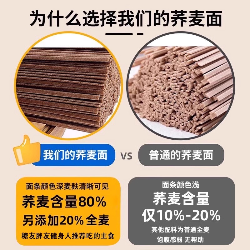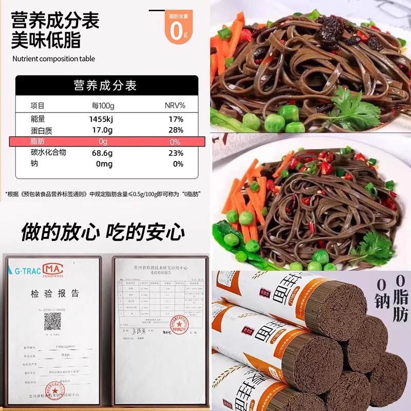 黑荞麦面0脂肪无糖精0钠乔荞麦面速食代餐纯粗粮面黑全麦面条挂面