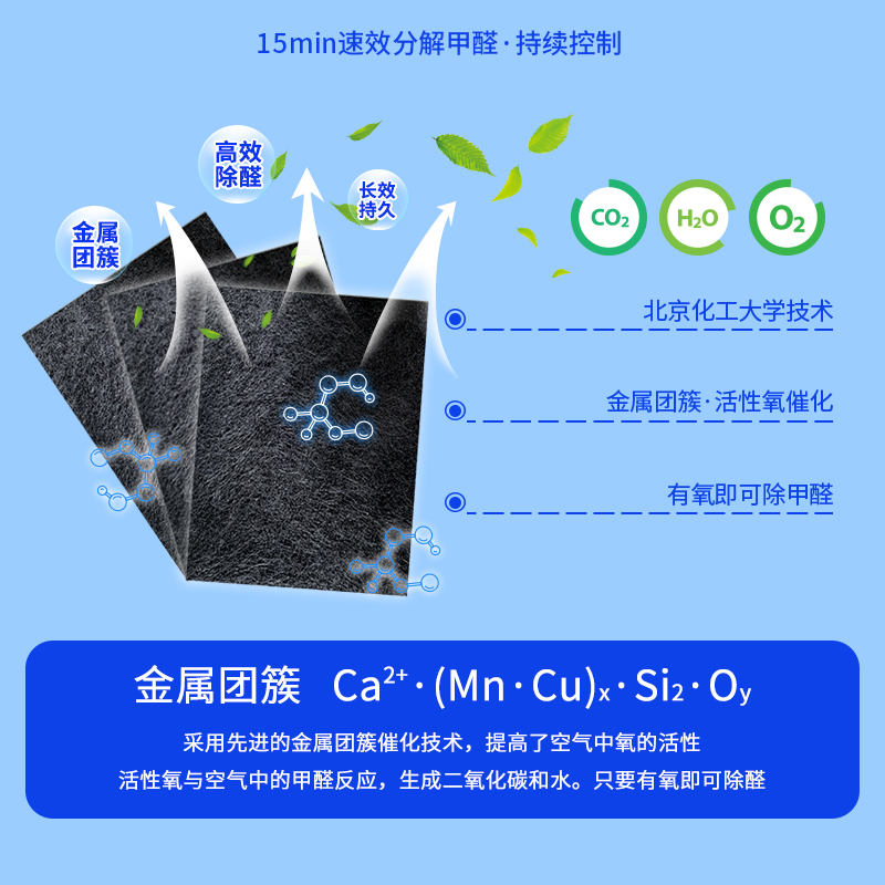 北京化工大技术金属团簇除醛片母婴级金属团簇甲醛分解毡片除醛布