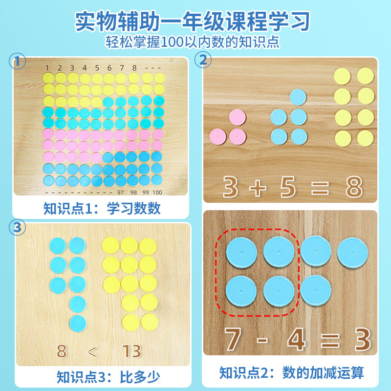 银河星小学数学学具塑料圆片100片装教具数数片盒装圆片幼儿园一年级计数圆片100以内启蒙数学加减法数学算数