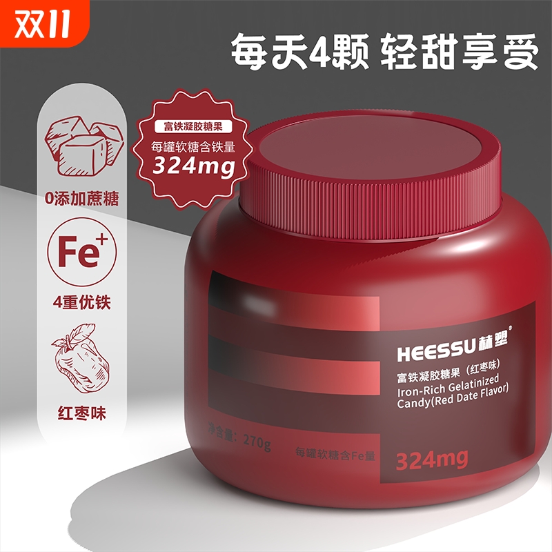 HEESSU赫塑富铁软糖270g/桶铁324mg铁Fe元素富铁女性营养正品罐装