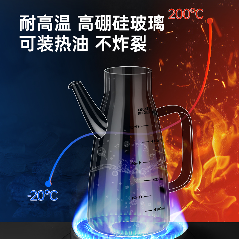 炊大皇高硼硅玻璃油壶家用不挂油第一名油瓶耐高温专用食品级酱油