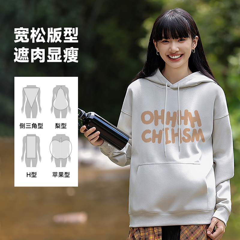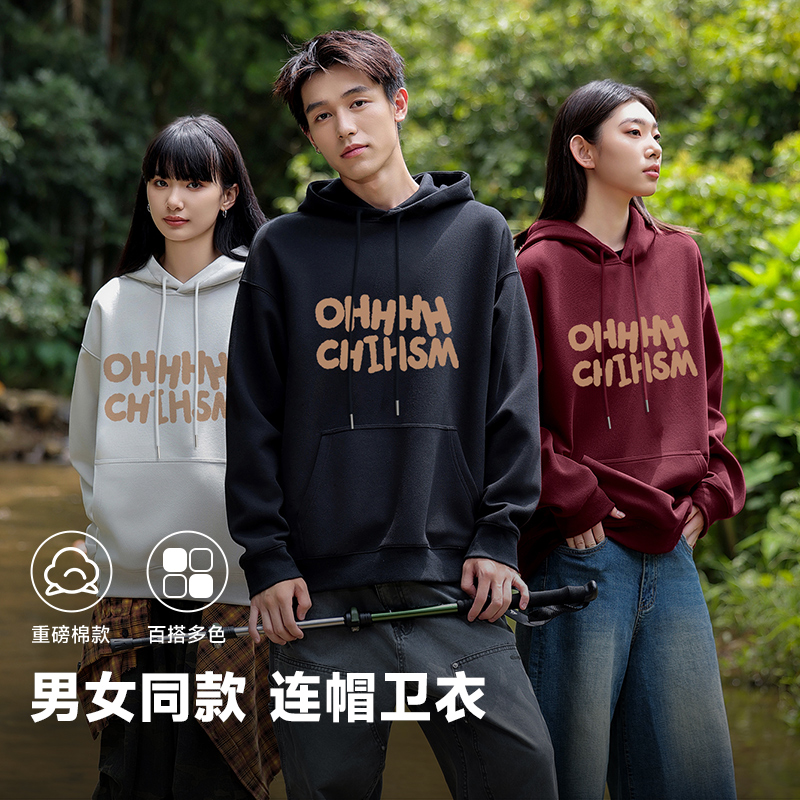G2真维斯卫衣男连帽2025秋季新款美式高街上衣休闲女士灰色套头衫