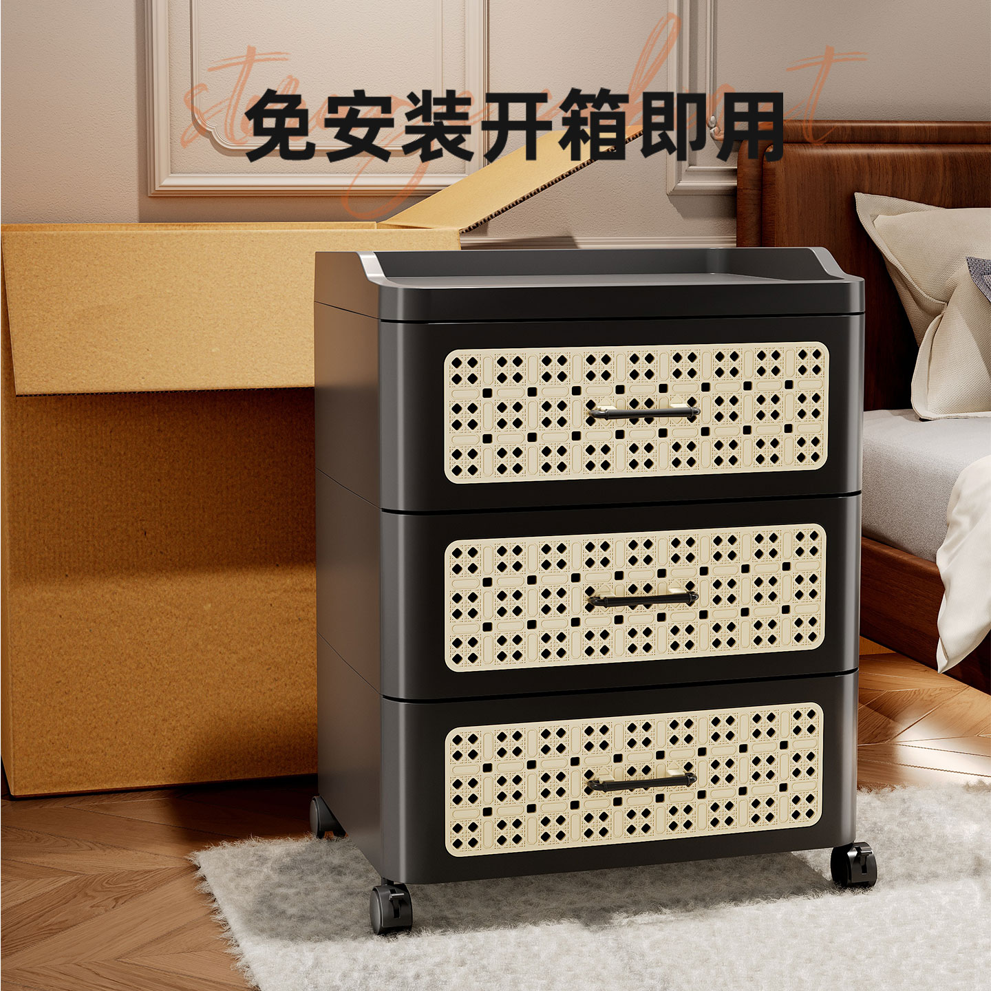 卧室床头柜日式多层置物架家用客厅零食玩具储物柜子抽屉式收纳柜