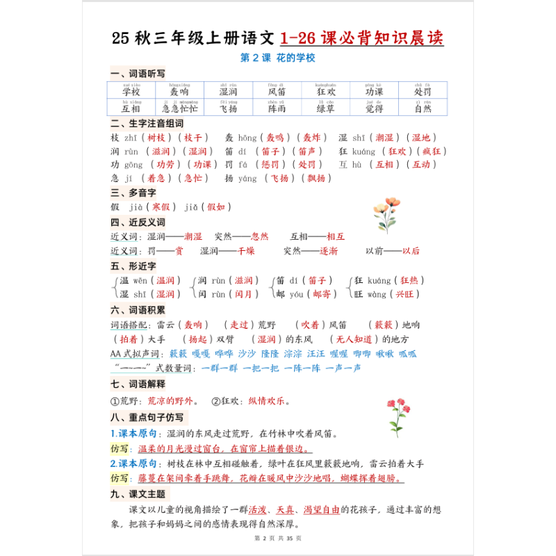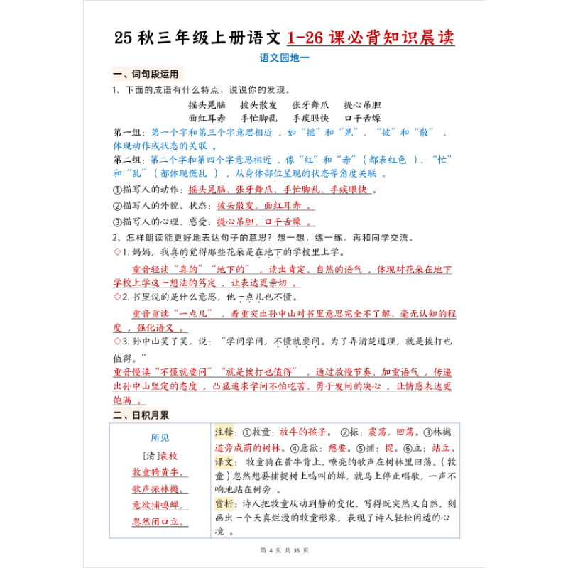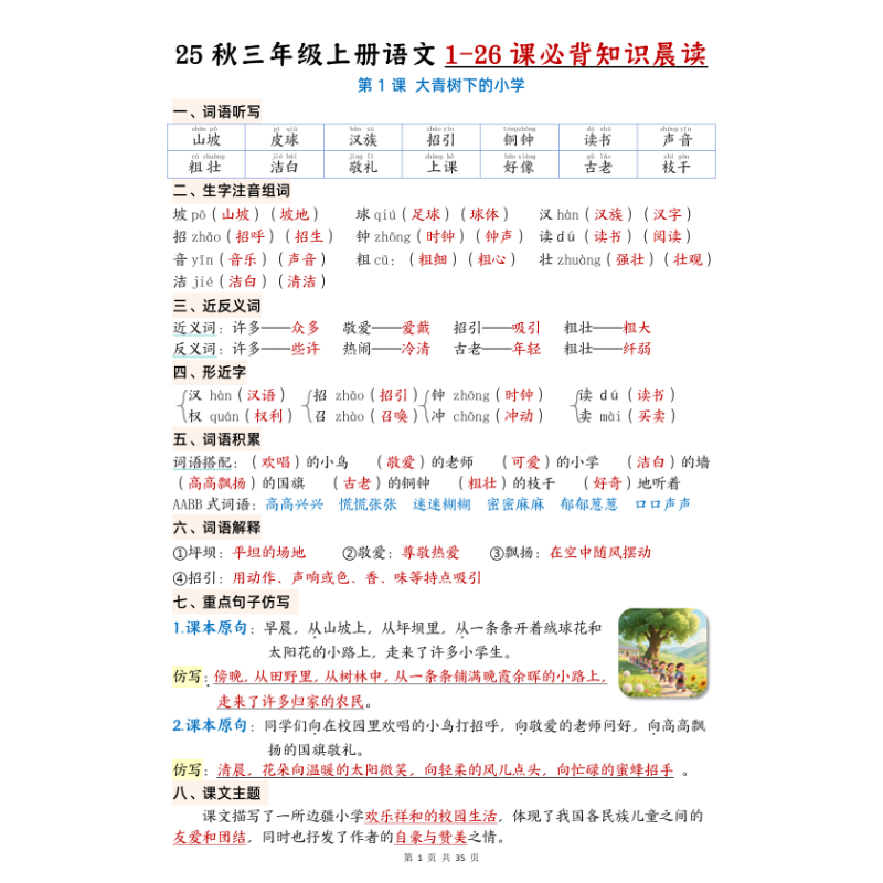 25秋三年级上册语文1-26课必背知识晨读单三上每课考点归纳总结期中期末复习重点字词积累背诵高频汇总课本同步清单课文阅读新版