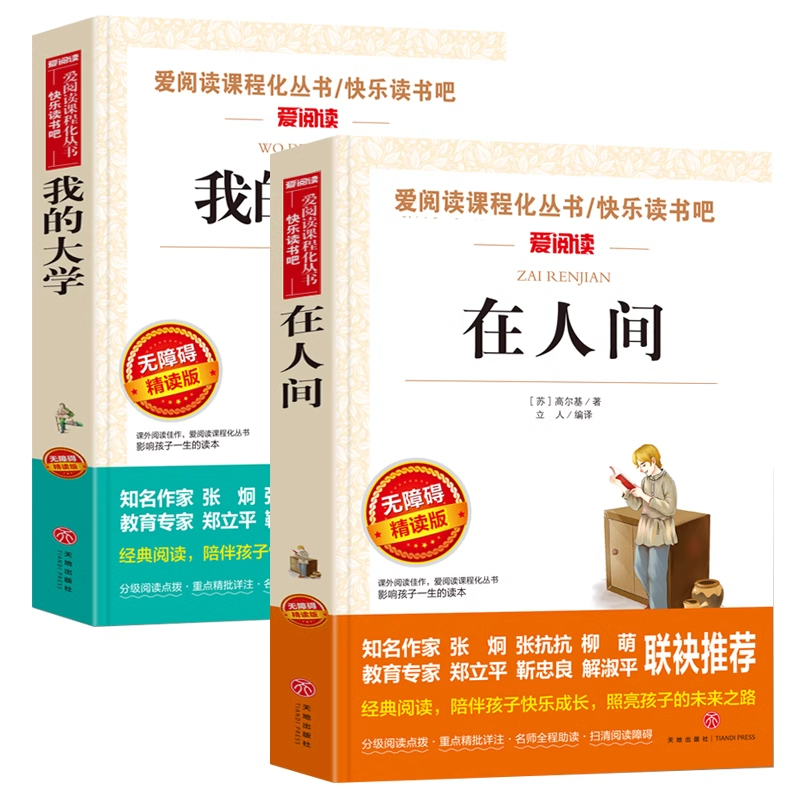 全套2册在人间和我的大学高尔基原著完整版小学生初中三四五六七年级初一课外阅读名著书籍畅销书排行榜推荐的童年三部曲经典