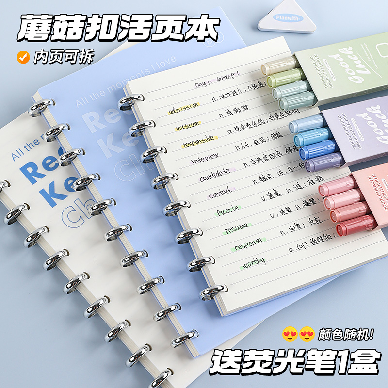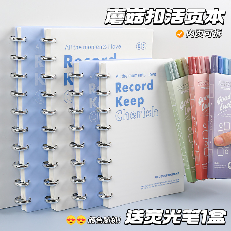 蘑菇笔记本b5活页高中生ins高颜值可拆卸简约本子记事本送荧光笔
