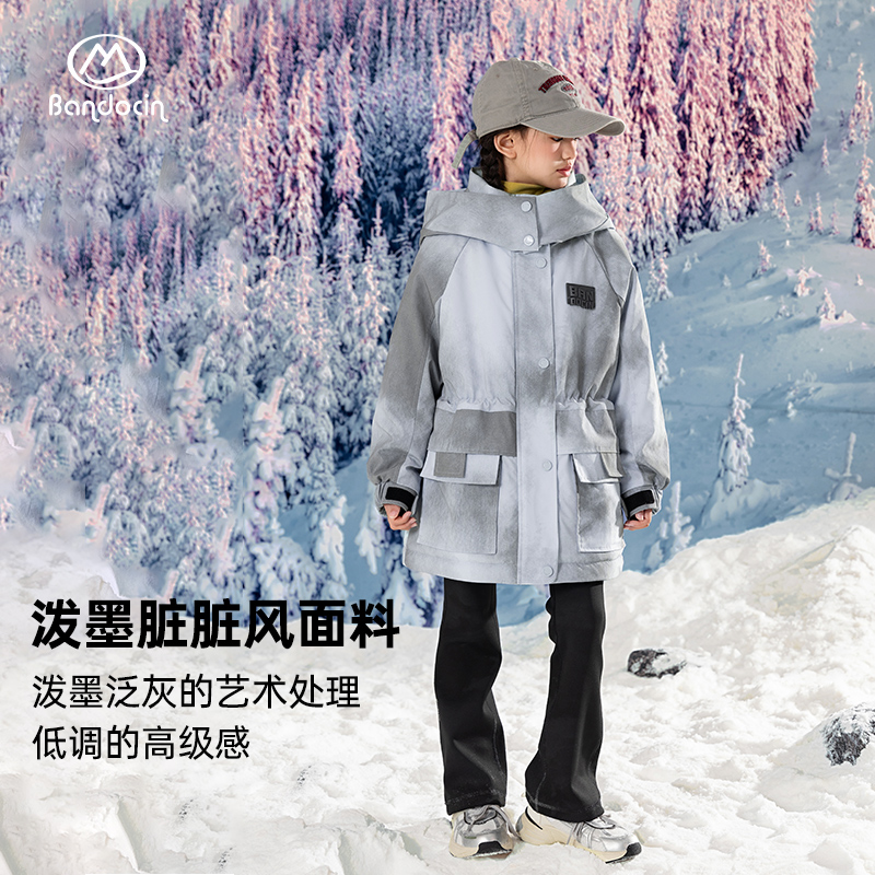 (清仓价)半度闲儿童派克服冬装加绒加厚女童冬季防水连帽外套洋气