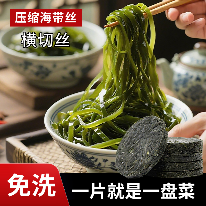 千海蓝有机压缩海带丝干货圆饼烘干泡发凉拌霞浦福建旗舰店小包装
