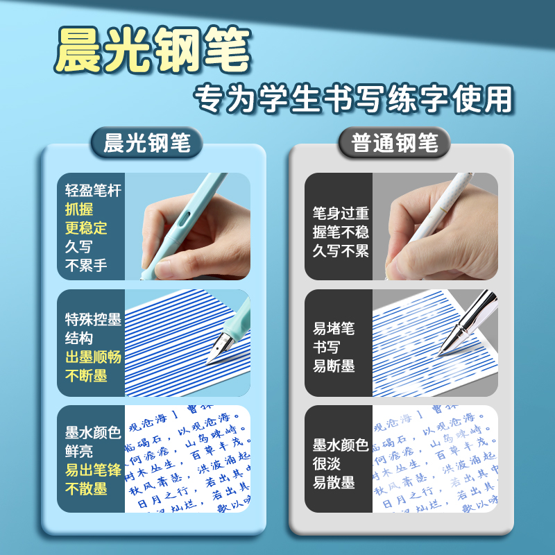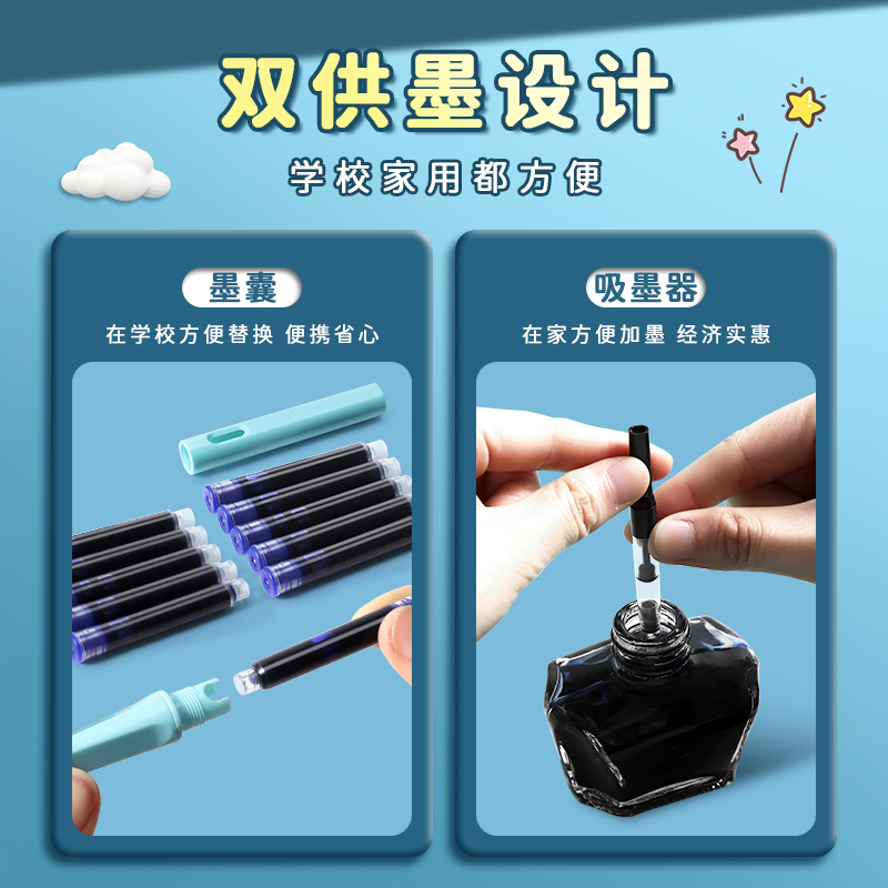 晨光钢笔学生专用小学生三年级儿童练字书法钢笔墨囊可替换可擦纯蓝特细矫正初学者四年级男女生款高颜值正品