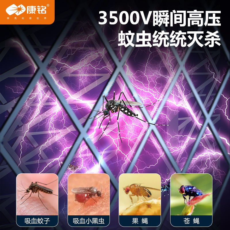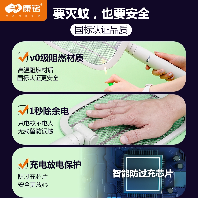 康铭2025新款电蚊拍充电式家用超强力灭蚊子电网拍伸缩折叠二合一