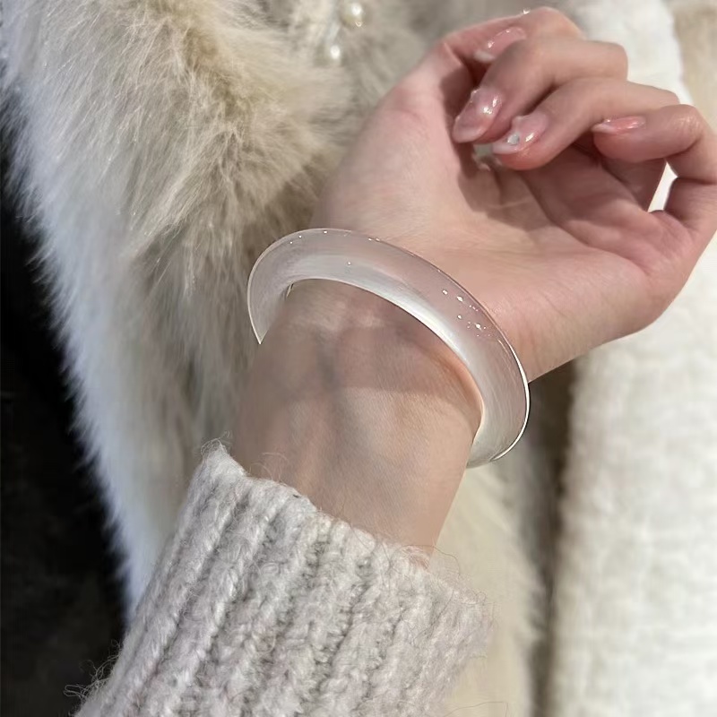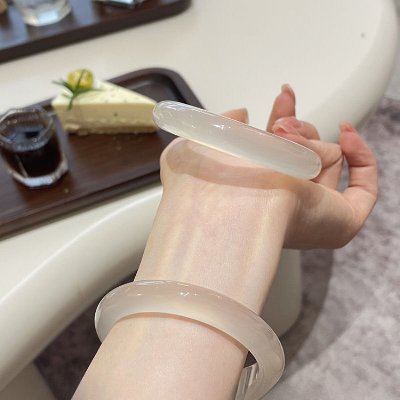荔枝仿冻玛瑙手镯冰透玉髓镯子女高冰白月光玉手镯情人节送女友