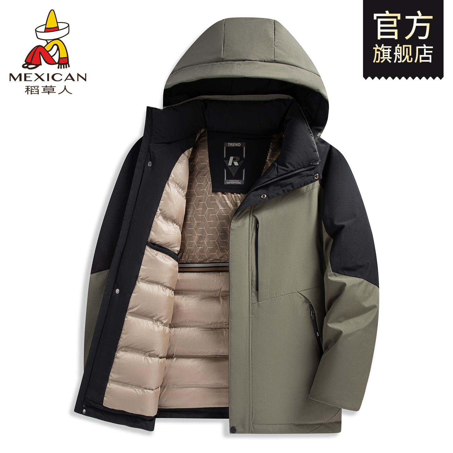 稻草人男士加厚棉服外套冬季中老年爸爸装抗寒保暖可拆卸帽棉衣J