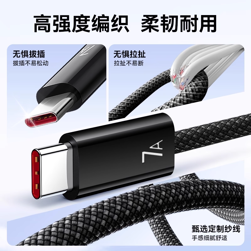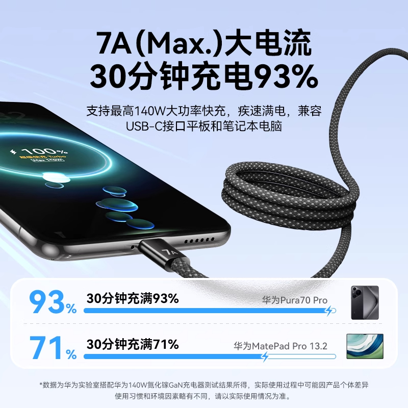 华为原装7A/6A编织数据线官方正品120/140W超级快充手机充电线手机平板笔记本电脑车载充电线双头Type-c