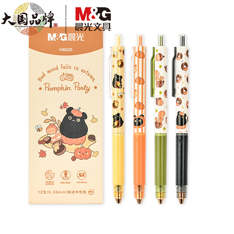 晨光限定款南瓜派对新品桃你欢心按动笔ST尖椎笔头0.38水笔少女心按压式黑笔女生用细字水性笔可爱签字笔