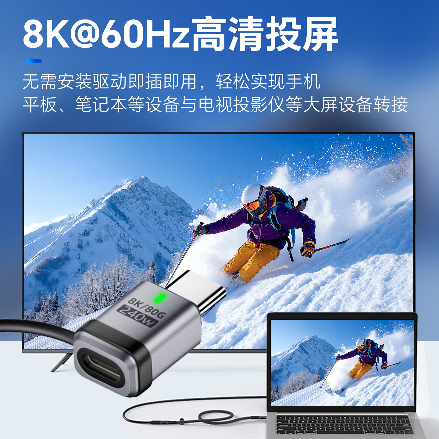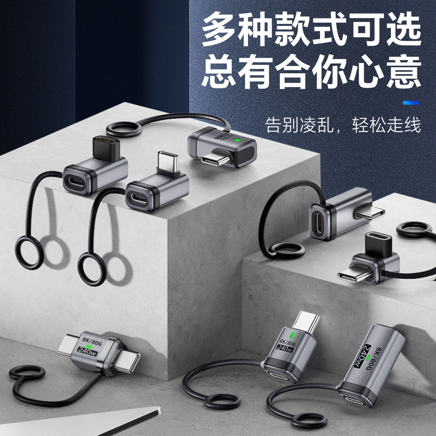 匠视typec转接头usb4.0雷电5数据线公对母弯头90度80g全功能延长PD240W快充直角L型侧弯适用苹果手机电脑8K