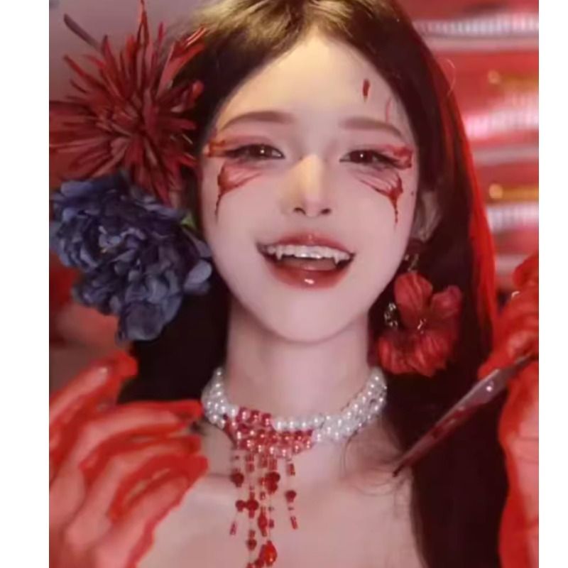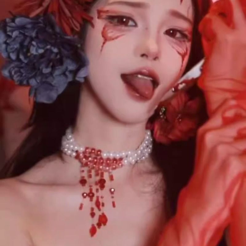 HEY TAO万圣节复古血液珍珠流苏choker颈链女cos扮鬼新娘项链配饰