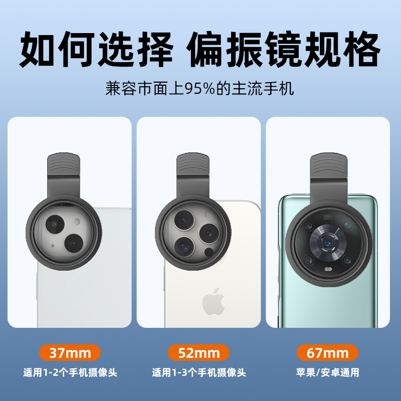 手机专用偏振镜头2025新款高清镀膜cpl偏光镜52mm辅助过滤水面反光滤镜外接后摄影消除适用苹果华为拍照神器