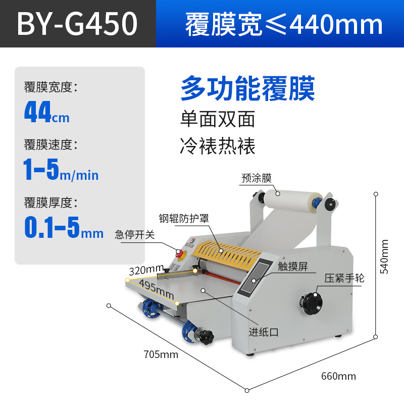 宝预BY-G450热覆膜机A3覆膜机不干胶单双热裱机小型过膜机大钢棍