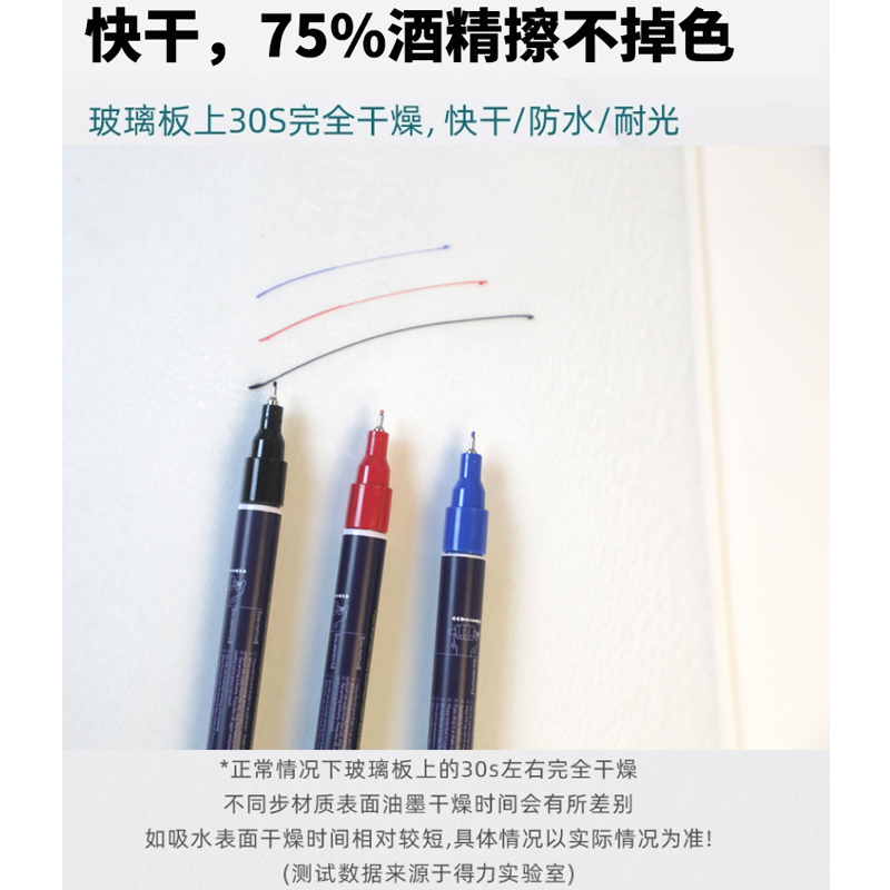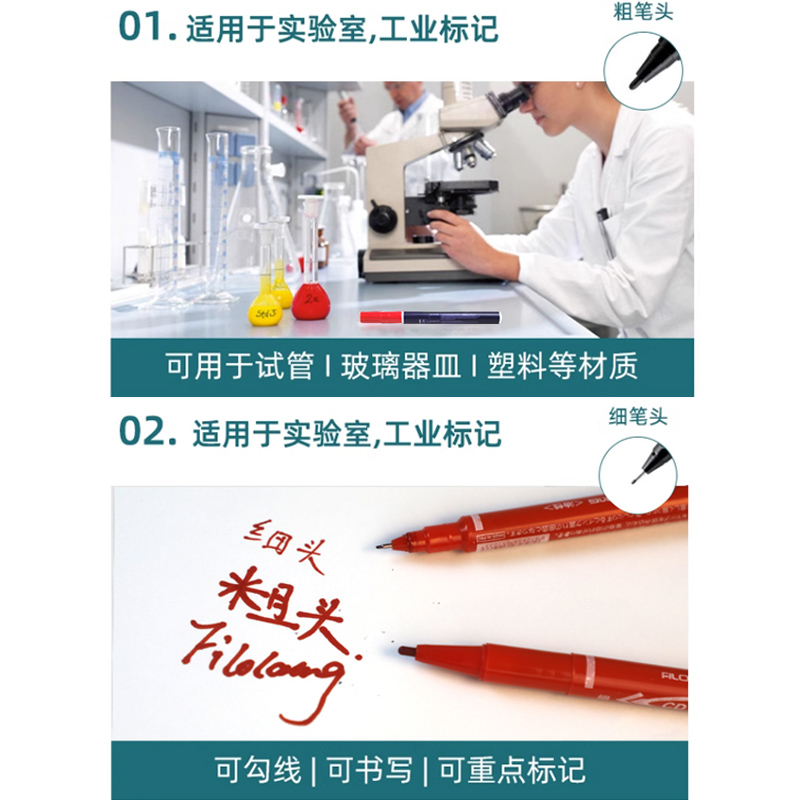 日式Filolang费洛朗实验室马克笔防75%酒精喷洒浸泡不防擦双头黑色记号笔玻璃试管单头标记笔酒精擦不掉色