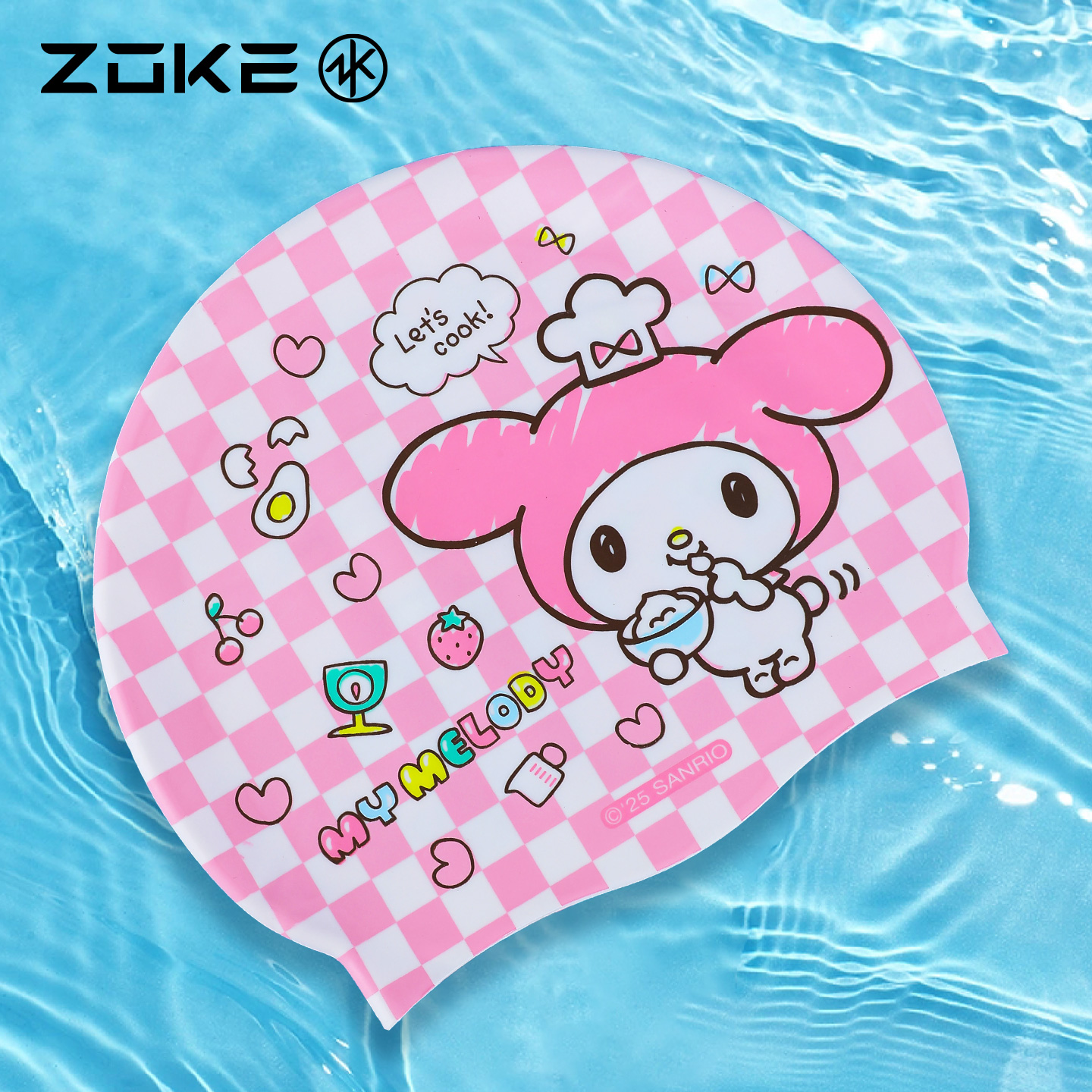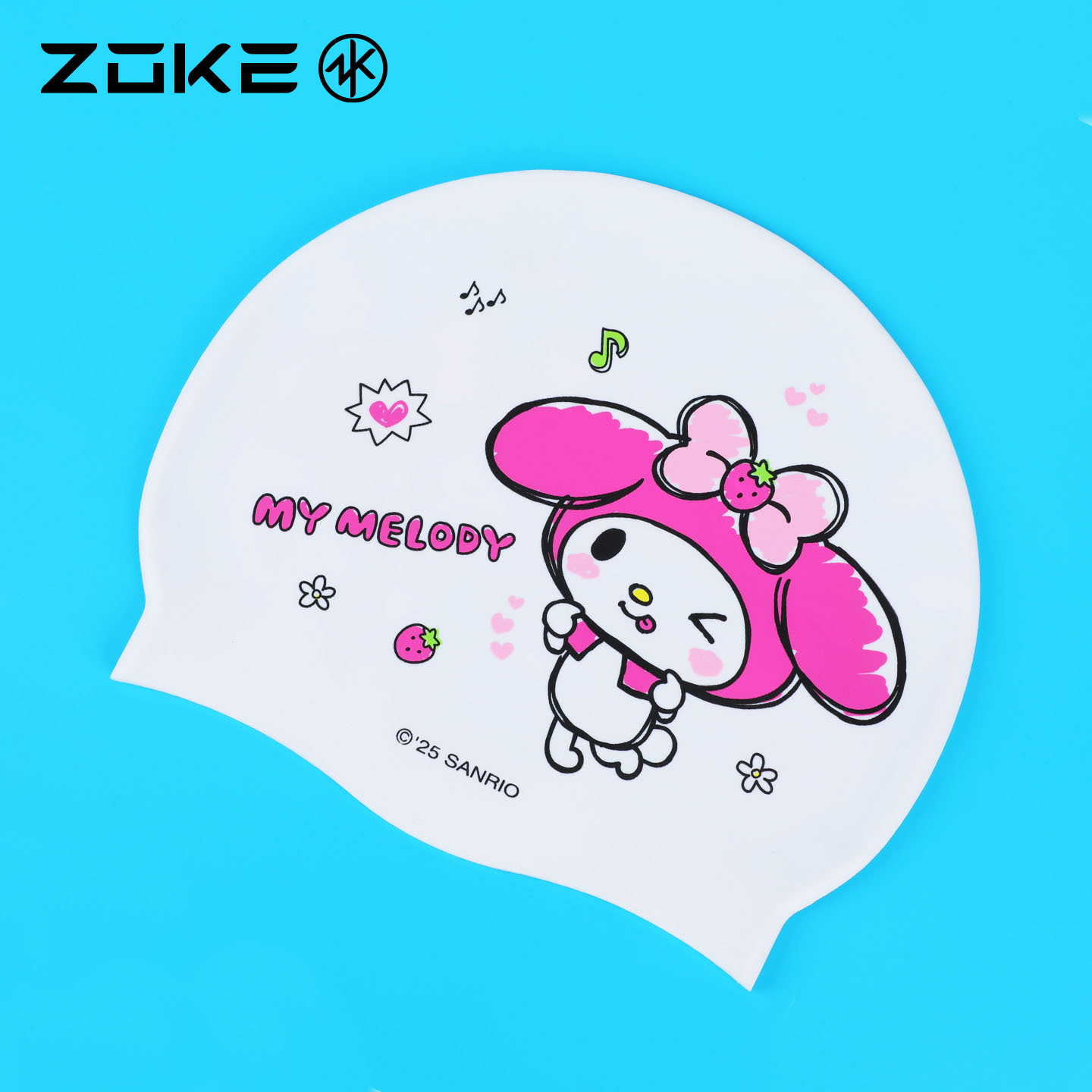 洲克硅胶泳帽防水护发护耳防滑不勒头zoke美乐蒂女孩游泳训练泳帽