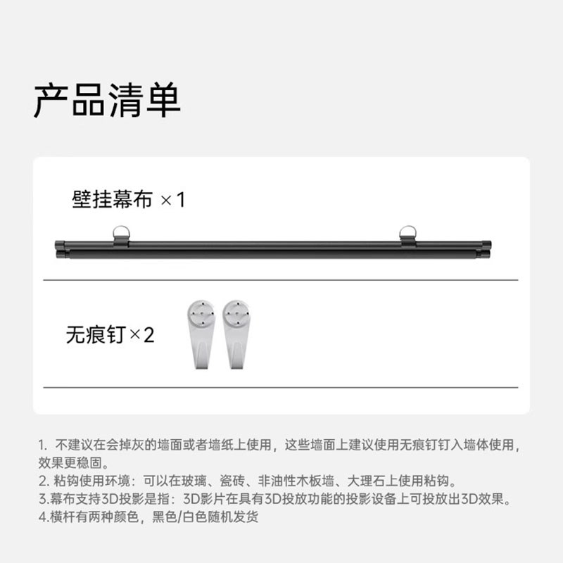 迈为(德国)高清纳米抗光投影幕布家用免打孔挂P墙100寸安装壁挂