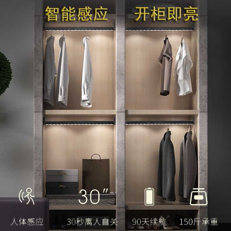 智能人体感应led感应充电衣杆灯带铝合金usb衣通灯衣柜挂衣服灯条