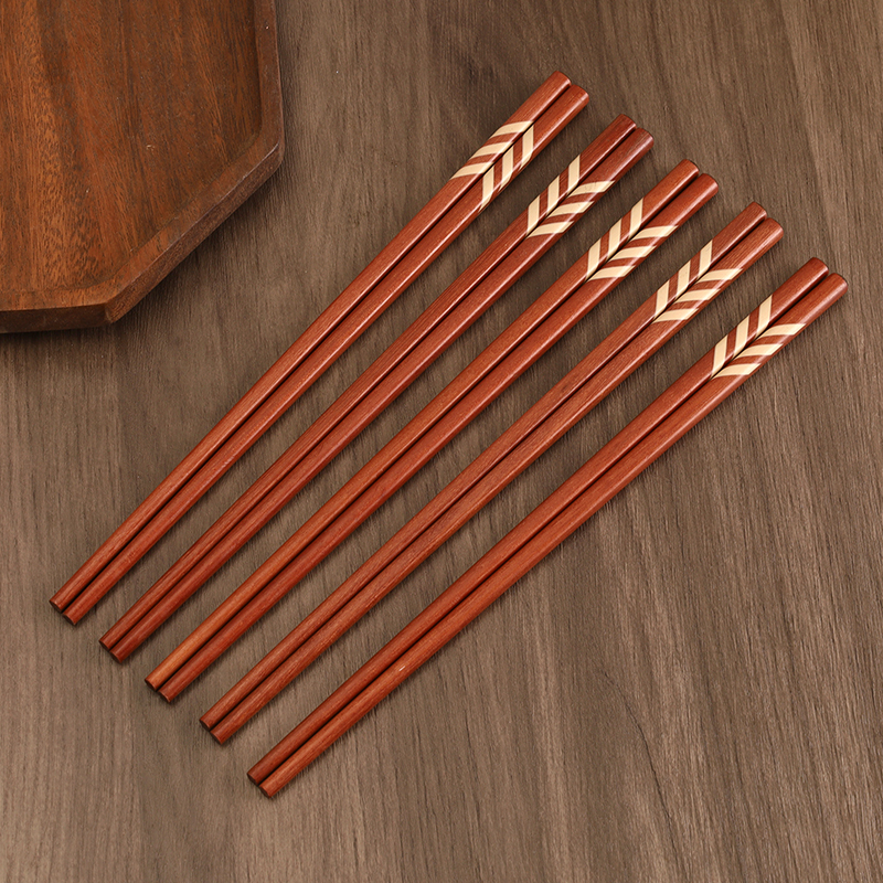 筷子家用实木高档餐具鸡翅木筷子无漆无蜡红檀木快子防滑耐高温