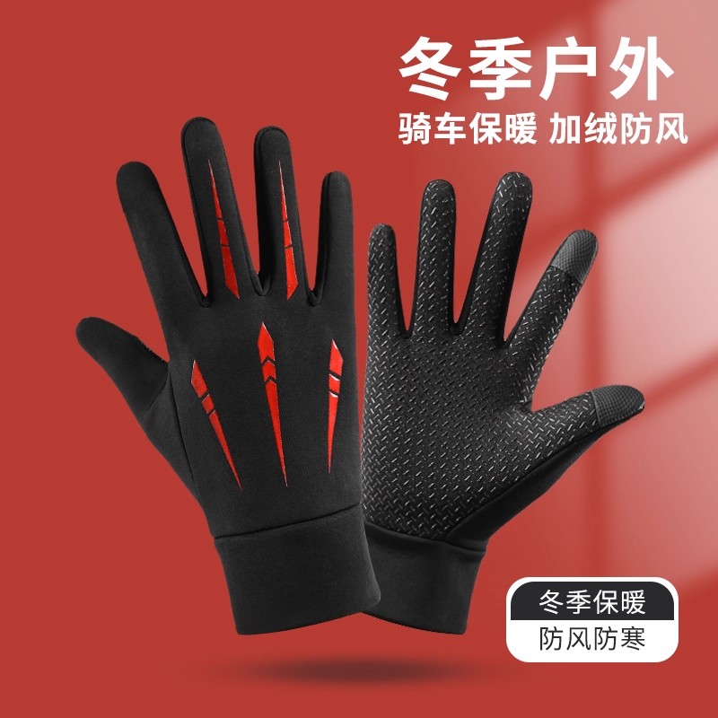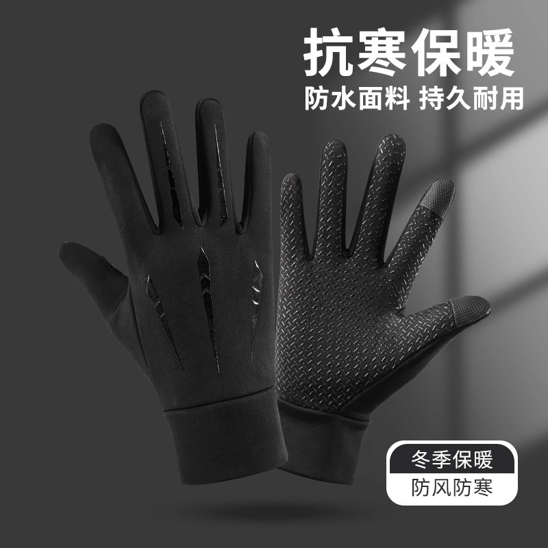 防风防水加绒保暖摩托车冬季防寒户外骑行骑车全指外卖男触屏手套