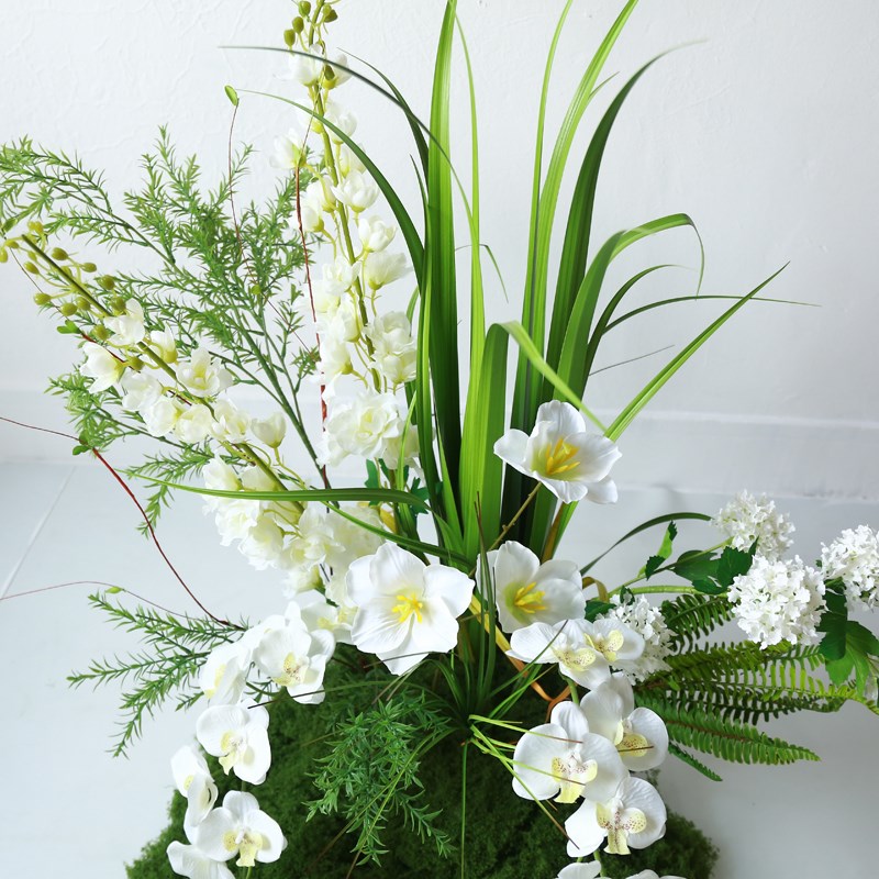 2025韩式婚纱照背景装饰白色超大蝴蝶结仿真花绿植青苔草坪插花