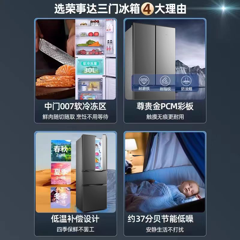 荣事达家用冰箱风冷无霜法式一级节能效双开门超薄大容量电嵌入式