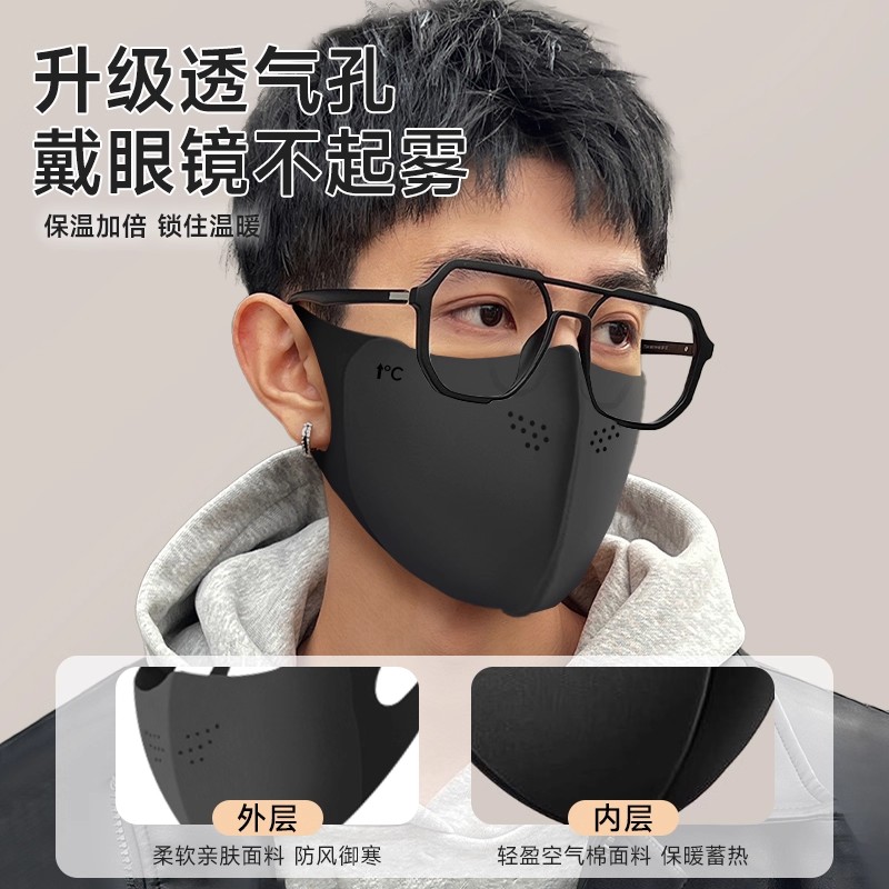 秋冬季保暖面罩防风防寒骑行防冻脸戴眼镜不起雾口罩2025男潮款