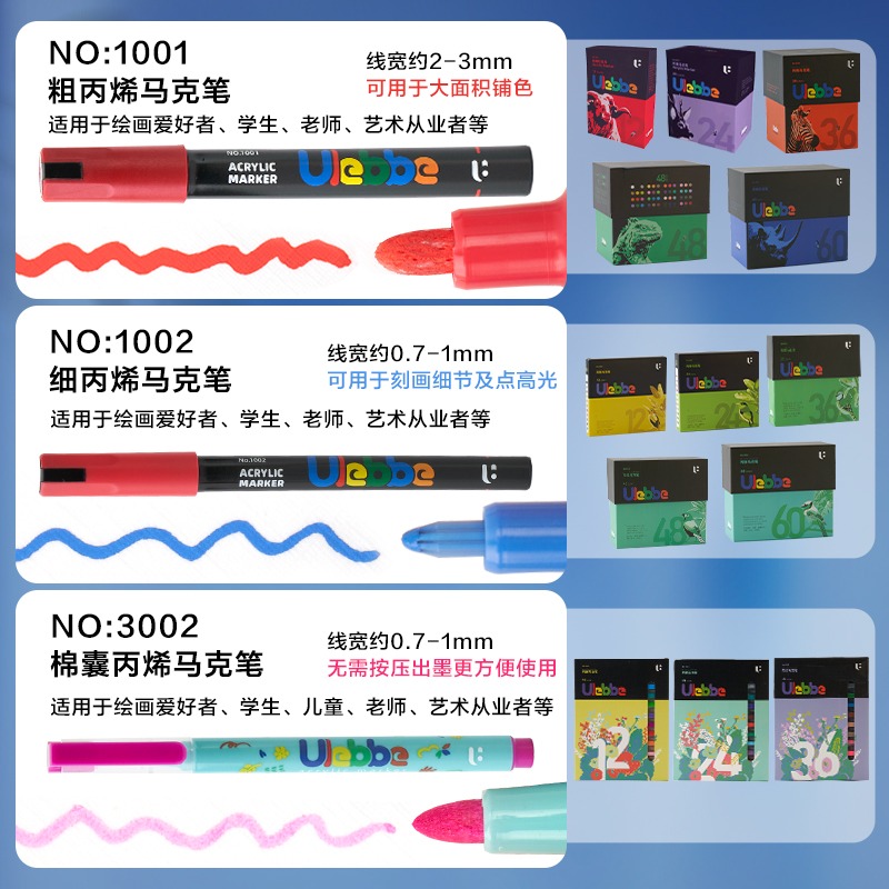 60色48色大容量丙烯马克笔盒装儿童专用可叠色不透纸幼儿园学生版软头丙烯笔可水洗水性水彩笔小孩画画笔