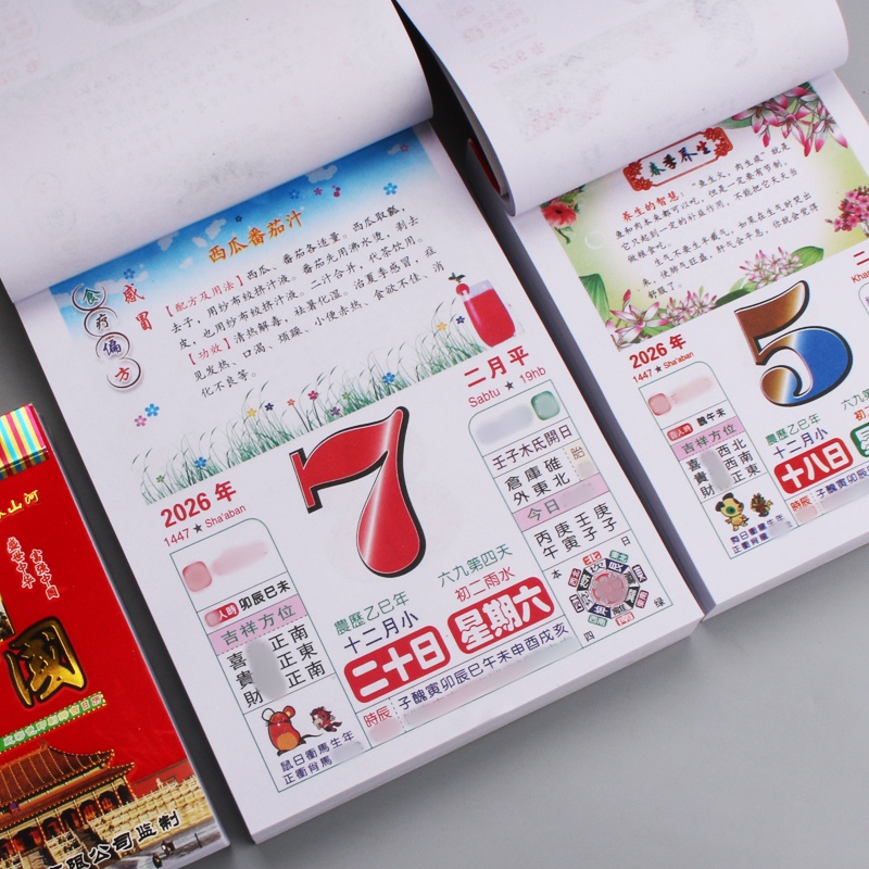 2026年彩色日历养生美食手撕老黄历一天一页双日挂历365单日历本马年年历每天一页老皇历香港
