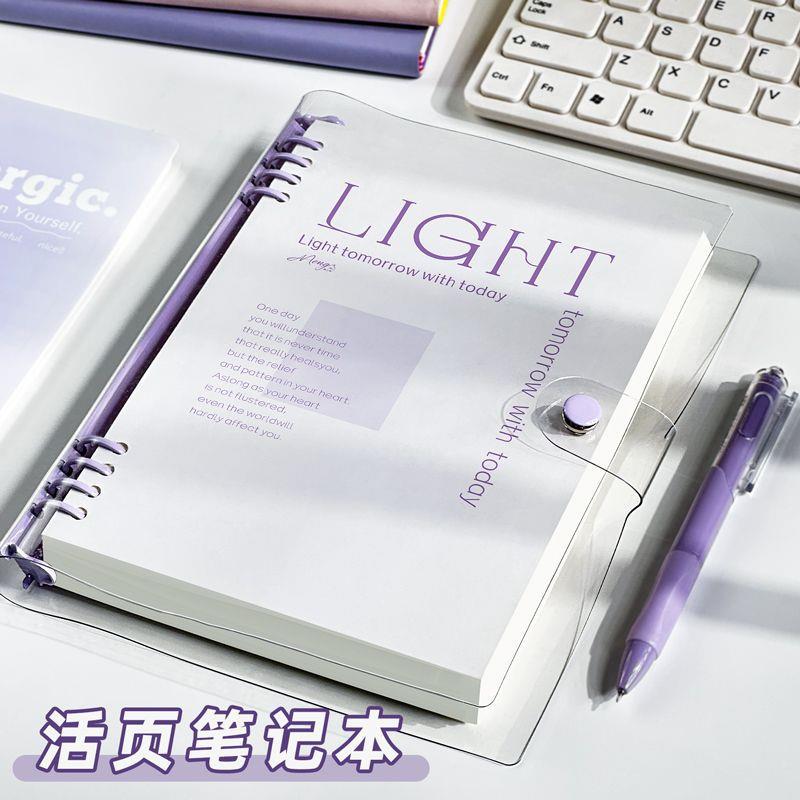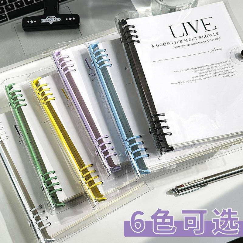 透明软活v页笔记本本横子活页本可拆卸扣环外壳p皮464c高颜值线b5