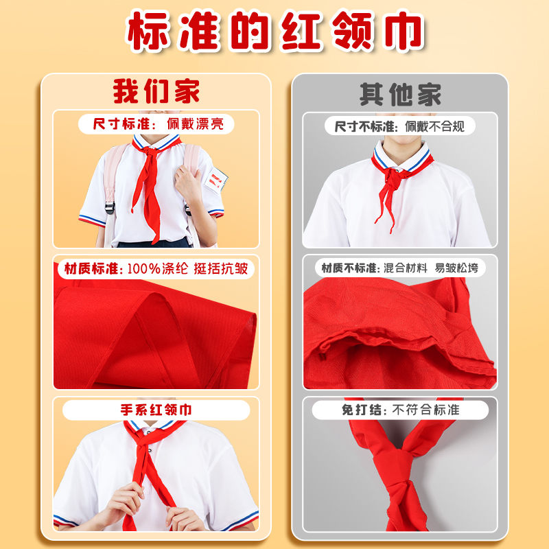红领巾小学生纯棉通用儿童少先队员用品不掉色涤棉透气全棉布加厚专用一二年级初中生大号抗皱红邻巾批发